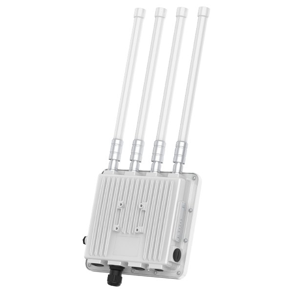 WiFi 6室外高性能无线AP双频四流,2975Mbps,1个千兆上联以太网接口,1个千兆下联以太网接口,一个千兆SFP光口,支持PoE供电,支持12V/2A直流供电,标配4根6dBi玻璃钢全向天线,标配一个802.3at PoE供电模块;