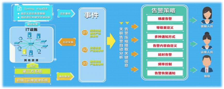 平台具有预防、预知性,主动发起维护,实时环境感知,85%的问题分钟级故障预警定位,AI算法自动优化,让运维变得更简单。